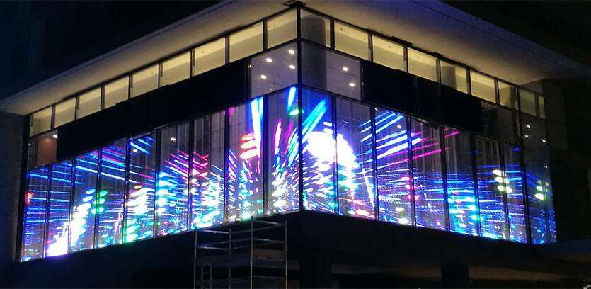 3、美觀:常規(guī)led顯示屏在搭建時(shí)需大規(guī)模的鋼架結(jié)構(gòu),費(fèi)時(shí)費(fèi)力并一定程度影響樓體的造型及美觀度。而led透明屏在安裝時(shí)僅需少量鋼架結(jié)構(gòu)即可輕松與墻體完美結(jié)合,對(duì)墻體無損害,還可提高其外觀整體美觀度。