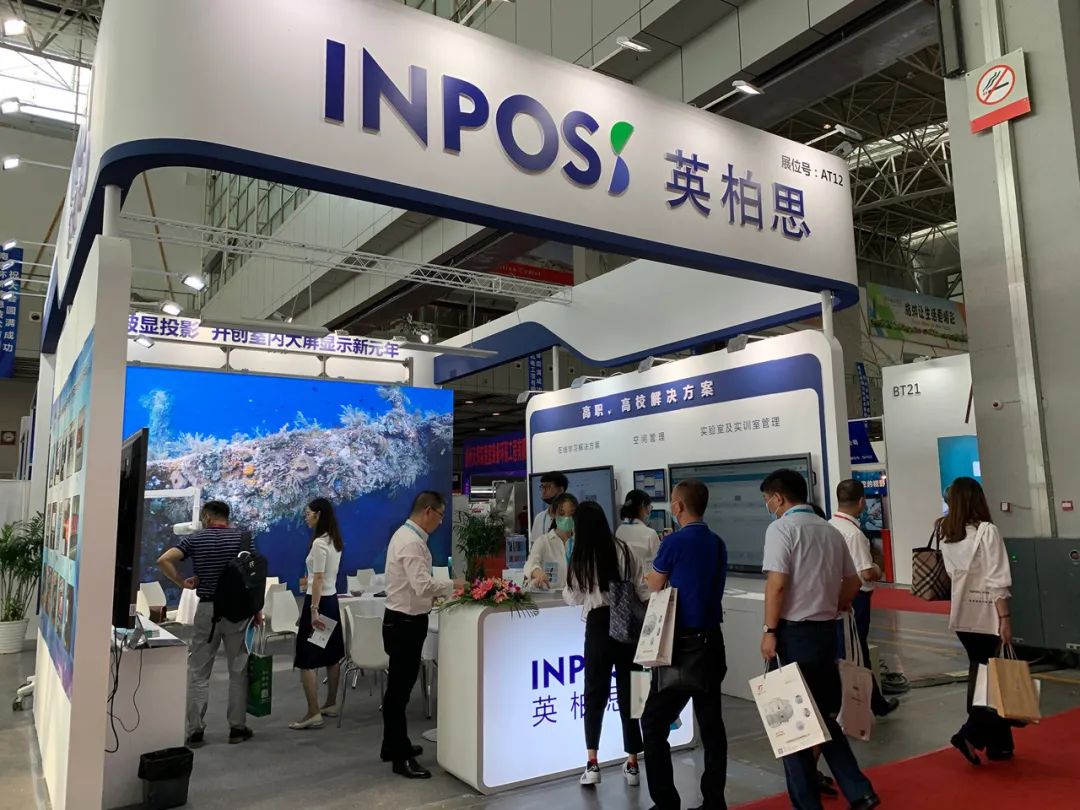 展會現(xiàn)場英柏思以玻顯投影為載體,展示了適合高職高校的教學信息化解決方案。