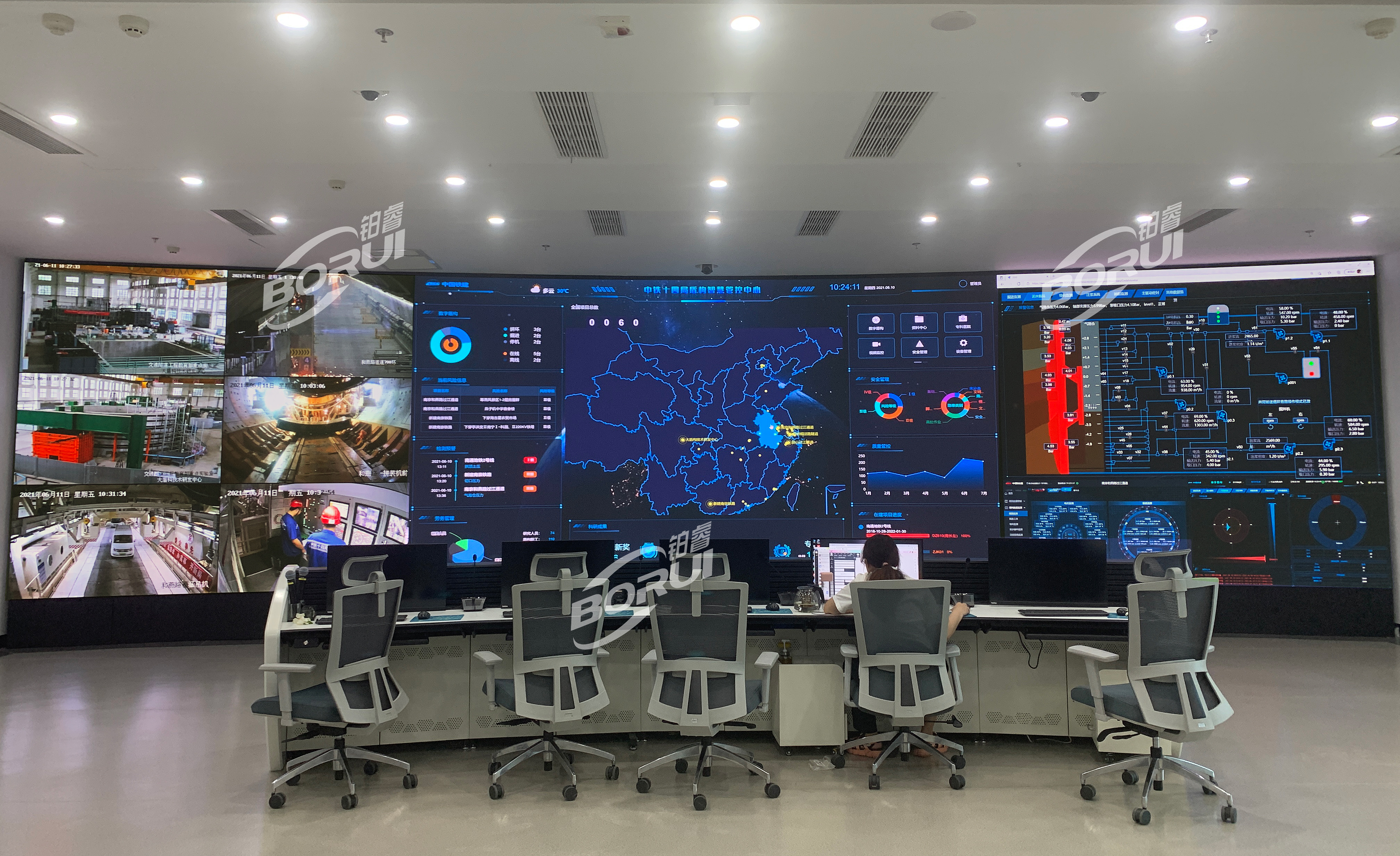 大盾構(gòu)公司始終秉承堅(jiān)持掌握核心技術(shù)、制定核心標(biāo)準(zhǔn)的原則,選擇了在屏顯技術(shù)上不斷突破革新的BORUI玻顯投影?作為顯示媒介,從而更好地對(duì)公司項(xiàng)目施工進(jìn)度、安全質(zhì)量、施工風(fēng)險(xiǎn)進(jìn)行綜合管控。