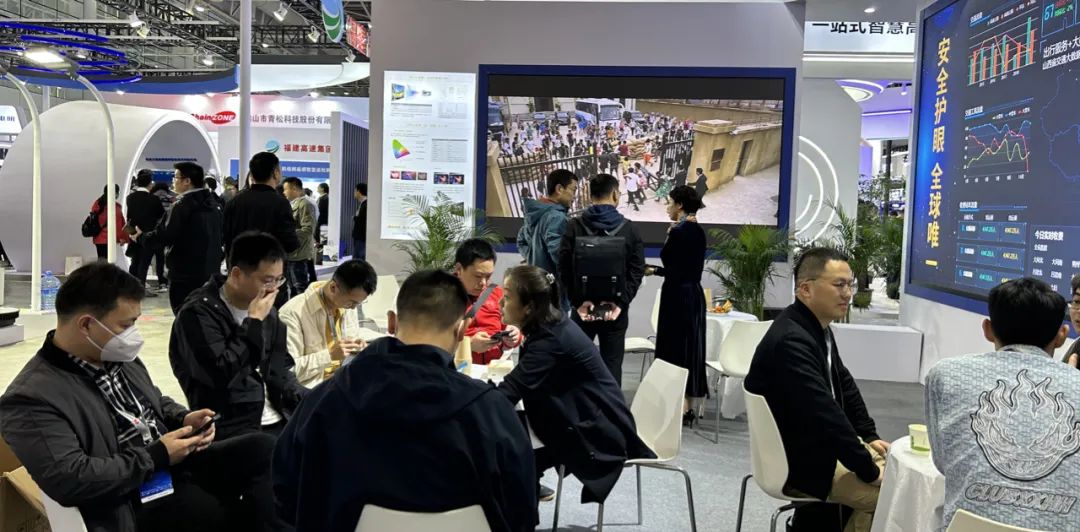 本次展會上玻顯投影以其出色的顯示效果,完整呈現(xiàn)了可視化智慧運(yùn)營平臺強(qiáng)大而壯觀的數(shù)據(jù)化功能及監(jiān)控畫面,并同時呈現(xiàn)了令人沉醉的沉浸式影音播放效果。